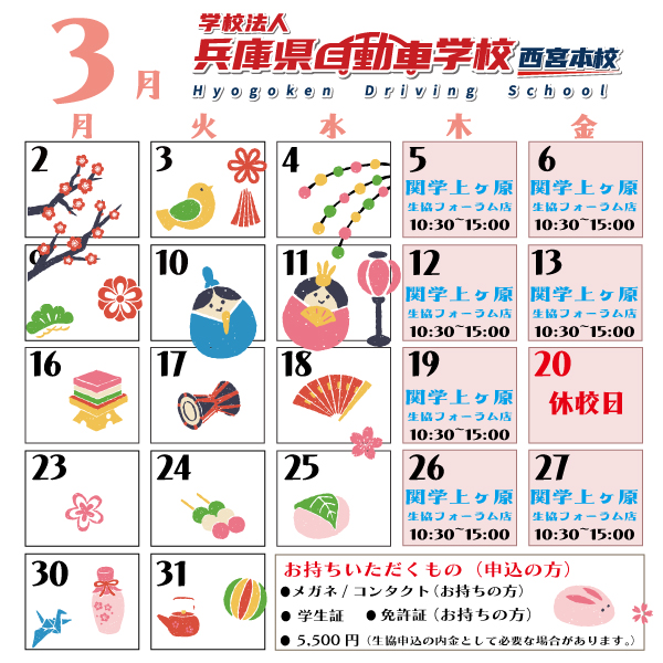 2026年3月の相談会カレンダーです! お気軽に相談にお越しください♪